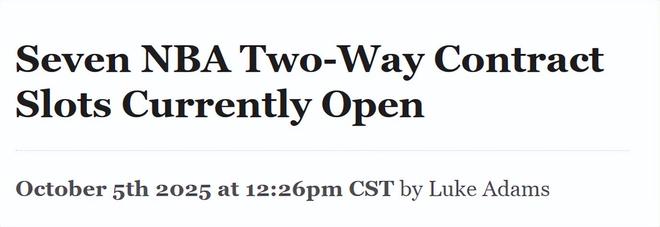 未来几周内,并非所有持有Exhibit10合同的球员都能将合同转化为双向合同。例如,骑士队训练营中有基利安-海耶斯、钱尼-约翰逊、米勒-科普、诺查德-奥米尔和特里斯坦-埃纳鲁纳5名球员持有Exhibit10合同,但只有后4人具备转化为双向合同的资格——海耶斯已有5年NBA效力经验,不符合合同转化条件。一名球员仅在本赛季是其NBA生涯第1年、第2年、第3年或第4年时,才有资格获得双向合同。尽管这7支球队中的多数可能会将双向合同名额授予训练营中表现突出的受邀球员,但并非所有球队都会通过这种方式填补剩余空缺。季前赛后期球队进行阵容裁员时,一些具备吸引力的双向合同目标球员会通过裁员释放出来,因此这些球队也可能转向自由市场,填补第3个双向合同名额。即便已填满3个双向合同名额的球队,在当前至常规赛揭幕战期间也可能调整阵容,这会导致部分现有双向合同球员被裁,从而为仍有空缺名额的球队创造更多潜在引援目标。双向合同球员最多可在50场NBA常规赛中进入激活名单;若能至少留队至1月8日,其薪资最高可达636435美元(相当于新秀最低工资的一半)。球队可在3月4日前持续更换双向合同球员。