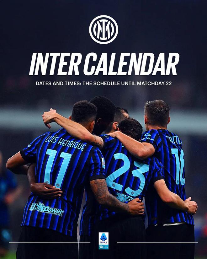 2025/26赛季意甲联赛第13-22轮和意大利杯赛程更新,以下均为北京时间:比萨 vs 国际米兰 11月30日22:00国际米兰 vs 威尼斯 12月4日4:00(意大利杯)国际米兰 vs 科莫 12月7日1:00热那亚 vs 国际米兰 12月15日1:00国际米兰 vs 莱切 1月15日3:45亚特兰大 vs 国际米兰 12月29日3:45国际米兰 vs 博洛尼亚 1月5日3:45帕尔马 vs 国际米兰 1月8日3:45国际米兰 vs 那不勒斯 1月12日3:45乌迪内斯 vs 国际米兰 1月17日22:00国际米兰 vs 比萨 1月24日3:45因蓝黑军团将在12月18日至19日前往利雅得参加EA SPORTS FC超级杯,第16轮与莱切联赛将改期至2026年1月15日进行。