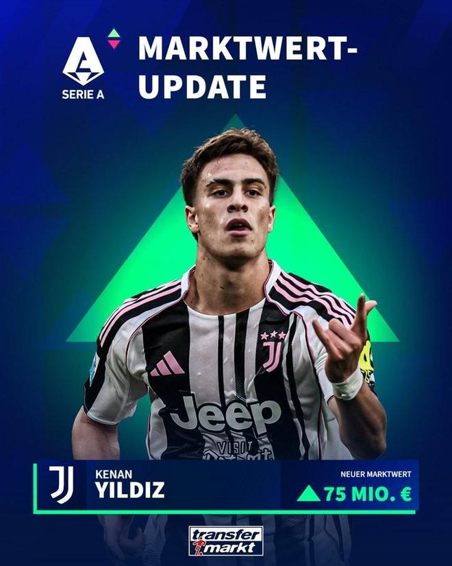 意甲U21球员身价前10:伊尔迪兹7500万第一,皮奥3000万第二