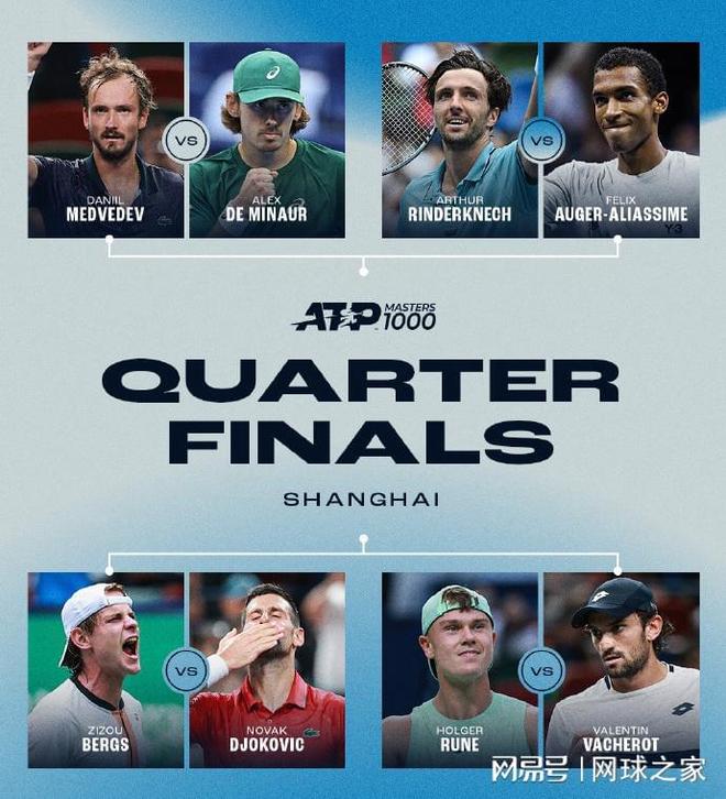 北京时间昨晚,ATP1000 上海大师赛结束了男单上半区第四轮较量,八强全部产生。在夜场焦点战中,前赛会冠军、俄罗斯名将梅德维德夫克服第二盘盘末抽筋的困难时刻,鏖战2小时52分钟,以7-6(6) 6-7(1) 6-4艰难击败美国小将勒纳-钱,今年与其交手三次终于取得首胜。1/4决赛,梅总将对阵7号种子、澳洲小野兔德米纳尔,后者以7-5 6-2击败葡萄牙人博杰斯。