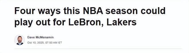 但对詹姆斯而言,离开南加州将是重大的生活变动——他的妻子萨瓦娜、女儿朱莉住在当地,儿子布朗尼与湖人有合同在身,儿子布莱斯则在亚利桑那大学打球,距离南加州仅需短途飞行即可抵达。此外,2026年自由球员市场上,可能还会有凯文-杜兰特、特雷-杨、詹姆斯-哈登等超级巨星,以及里夫斯、德雷蒙德-格林、布拉德利-比尔、诺曼-鲍威尔、科比-怀特等实力派球员——因此,詹姆斯未必能得到全联盟的追捧。如今,詹姆斯的未来仍悬而未决。他的第23个赛季,究竟是“职业生涯倒计时”,还是通往第24个赛季(甚至更久)的“桥梁”?最终是他自己做决定,还是身体状况替他做决定?这一切都尚未可知。“所有人都在试图决定他何时退役,但事实是,没人真正知道答案。”一位接近詹姆斯的消息人士告诉ESPN。
