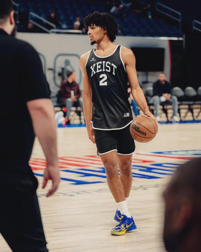 谢顿-夏普出生于2003年5月30日,比安芬尼-西蒙斯小4岁。夏普身高1米96,臂展2米12,垂直起跳高度达到1米24!2021年他决定跳过高四,加盟肯塔基大学。即便是跳级之后,夏普依然高居全美第三,仅次于霍姆格伦和班凯罗!