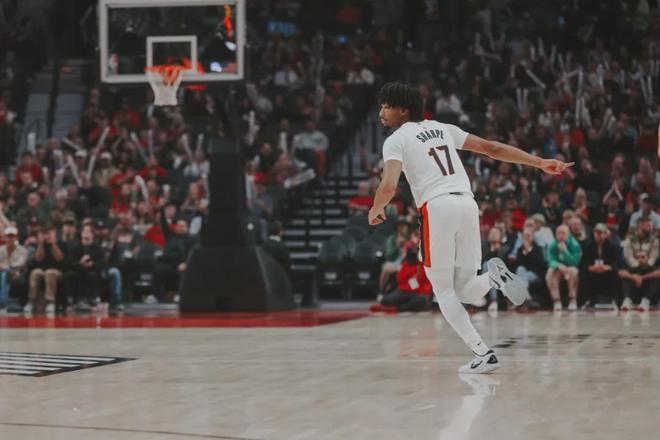 2022年NBA选秀,夏普首轮第7顺位被开拓者选中,他可是一场NCAA都没打。当时开拓者有利拉德和安芬尼-西蒙斯,新秀赛季夏普只能打替补,场均出战22.2分钟,得到9.9分3篮板1.2助攻,三项命中率:47.2%,36%,71.4%。
