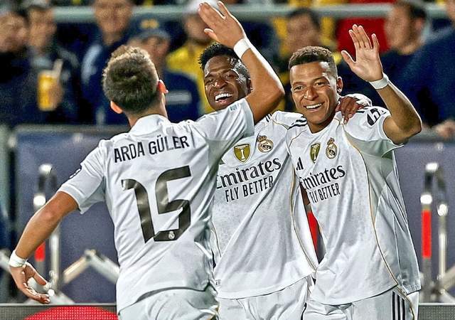 状态最好的还是姆巴佩,《阿斯报》表示,如果姆巴佩保持现有效率,2025-26赛季踢60场比赛,场均1.4球,法国巨星能进80球!当然,这样的效率过于夸张,但姆巴佩可以冲击60球大关,打破C罗在皇马的单赛季进球纪录——2014-15赛季,C罗在皇马打进61球,创造最佳纪录。本赛季姆巴佩再踢50场,保持场均1球的效率,就能打破C罗的纪录。这次FIFA比赛期,皇马的三巨头在各自国家队都表现出色。姆巴佩在法国vs阿塞拜疆的比赛中传射建功;维尼修斯在巴西5-0韩国的热身赛中1球1助;居勒尔在土耳其6-1狂胜保加利亚的世预赛中1球2助。