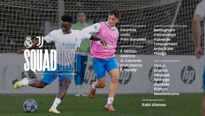 皇家马德里官方公布了欧冠联赛阶段第三轮主场对阵尤文图斯的比赛大名单,姆巴佩领衔,费兰-门迪伤愈回归。比赛将于北京时间10月23日3:00举行。皇马对阵尤文大名单门将:库尔图瓦、卢宁、弗兰-冈萨雷斯后卫:米利唐、劳尔-阿森西奥、卡雷拉斯、弗兰-加西亚、费兰-门迪中场:贝林厄姆、卡马文加、巴尔韦德、楚阿梅尼、居莱尔、蒂亚戈-皮塔奇前锋:维尼修斯、恩德里克、姆巴佩、罗德里戈、贡萨洛-加西亚、卜拉欣-迪亚斯、马斯坦托诺