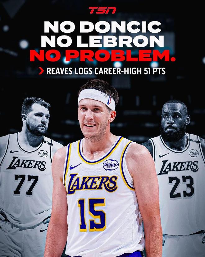 有人统计了一项数据当东契奇和老詹同时缺席是里夫斯三场比赛的得分分别是45分、37分、51分现在还有人质疑里夫斯的带队能力吗