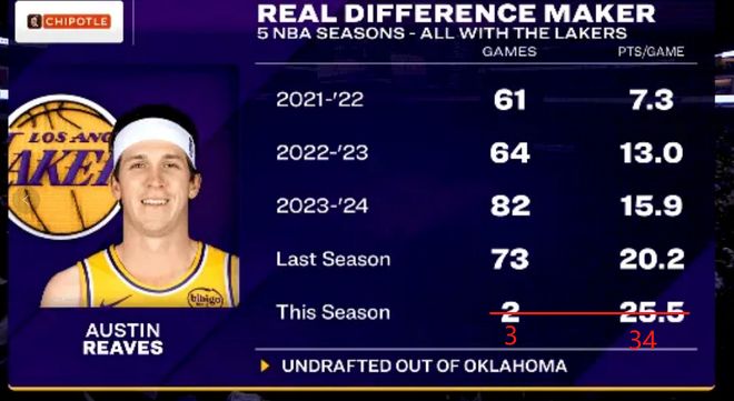 说真的,如果不是最后里夫斯传球拉拉维亚没把握住机会里夫斯这会儿就是50+三双了