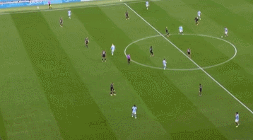 就像下面的动图所示,哈兰德在断球之后快速向前起速,队友传球是有失误的,但哈兰德还是成功拿到皮球。随后在3人包围圈下,及时把球传了出去。这也是哈兰德一个关键的进步点,他不只是能进球,同时在愿意参与防守的基础上,还能在反击推进时给队友送出一些不错的传球和起到串联进攻的作用。