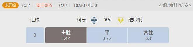 科莫目前状态正佳,上轮客场0:0战平帕尔马,已经7轮不败,目前排在意甲第7。球队主场至今4胜2平保持不败,联赛大部分进球来自主场,包括击败尤文和拉齐奥两场硬仗,可见球队整体实力相对上赛季得到提升,主场士气和优势都比较明显。维罗纳上轮主场2:2战平卡利亚里,收获本赛季第5场平局,目前以5平3负排在意甲第17。相对于科莫来说,维罗纳的进攻效率明显处于劣势,场均进球只有0.5,场均丢球却达到1.5,其中三次被对手零封,实力不敢高估。双方上赛季交手中,科莫主场3:2击败对手,客场则与对手战平,比较有优势。本赛季科莫实力和状态都更胜一筹,本场胜算自然更大。机构初始给科莫1.0让步居多,同样更看好科莫胜出。看好结果:科莫胜,比分10 20