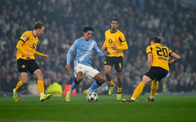 欧冠前3轮战罢,两支球队的战绩都是2胜1平,只不过总身价5亿欧元的多特蒙德3场比赛打进了12球,凭借净胜球的优势,力压总身价12.1亿欧元的曼城。开场之后,曼城主动将控球权让给对手,多特蒙德有了反客为主的感觉。但是,曼城在射门次数方面,还是压制对手。