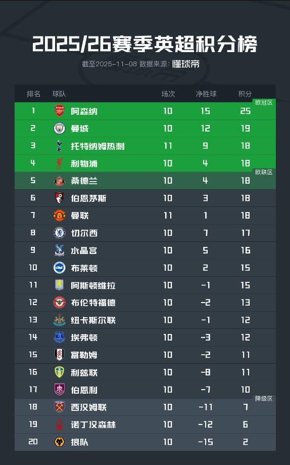 相关阅读:曼联热刺队上半区净胜球英超积分榜