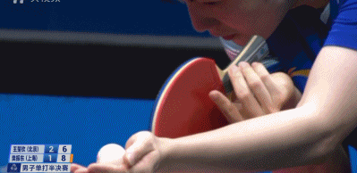最后两分,还是靠发球。这球发的比看起来更拐,角度更大,顶住樊振东没法发力
