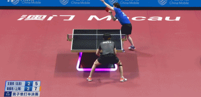 樊振东在相持中的回应仍然强硬,先是4-2第三板仍然给中间长,然后正手对抗得分;之后5-2一个直线反手长球开路,正手补上之后一个暴力熊猫看板反手——有年月没见过了,有点唏嘘。