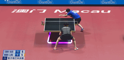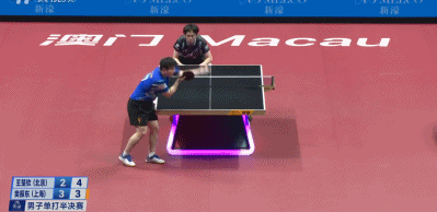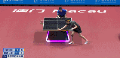 局分打平,但这时候场面已经开始向樊振东倾斜。他高抛的变化开始给王楚钦压力,加上王楚钦只用一套发球,到现在变化都抖搂差不多了,前三板的形势此消彼长,让樊振东的战术更单纯:尽量拧起来打相持——然后就是一波开局6-2领先。王楚钦追到6-4,樊振东叫了暂停;之后到了7-5,樊振东这个高抛又出场了:这次是个死转直线下旋。