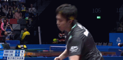 4-6的时候,樊振东又变成了这个高抛发球——记住这发球,后边有用: