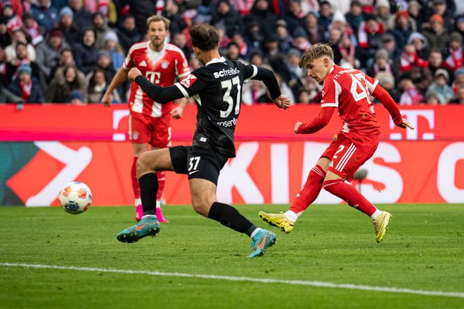 拜仁在新赛季开打之后状态非常火爆,各项赛事16胜1平保持不败,包括德甲前10轮9胜1平,弗赖堡则是3胜4平3负积13分暂列第10位。本场比赛拜仁沿用4231阵型,凯恩担任单箭头,奥利塞、路易斯-迪亚斯和年仅17岁的天才小将卡尔出战,帕夫洛维奇和格雷茨卡搭档双后腰,约纳坦-塔和于帕统领后防线,诺伊尔镇守球门。