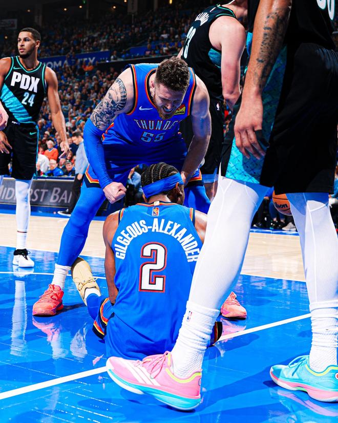 北京时间11月24日,NBA常规赛继续火热进行。雷霆坐镇主场与开拓者展开对决,OKC战绩为16胜1负,继续领跑联盟。值得一提的是,雷霆本赛季唯一输球的一场就是败给了波特兰,该场比赛,OKC众将士志在完成复仇。此役,杰伦威廉姆斯、维金斯继续伤停,雷霆的首发五虎是亚历山大、多尔特、哈尔滕施泰因、霍姆格伦与华莱士。利拉德、霍勒迪、夏普、罗伯特威廉姆斯等7名开拓者球员缺战,斯普利特的首发五虎是阿夫迪亚、格兰特、卡马拉、克林根、西索科。罗伯特威廉姆斯的缺战,让杨瀚森有机会获得更多上场表现机会。两大超人气球队的较量,一触即发。杨瀚森8+4+3创两大纪录,开拓者完败雷霆!亚历山大37+7打疯了创NBA第1神迹,神射手惊艳!全场比赛回顾首节开打,波特兰状态慢热,阿夫迪亚连续单打不中。亚历山大状态火热,他连续砍分,率队持续扩大分差。波特兰陷入个人单打,只有零星取分,雷霆则实现了多点开花,得以不断掀起得分狂潮。首节打完,OKC以39比18领先,亚历山大单节轰下17分。亚历山大倒地庆祝