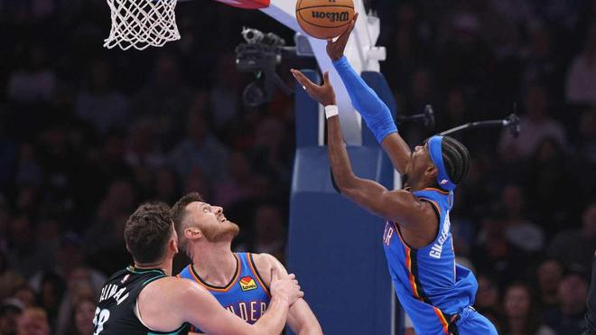 此役,杨瀚森还创下了2大纪录。第1、杨瀚森的三分命中数是个人生涯新高。第2、得到本场第6分之际,杨瀚森NBA生涯总得分已经来到26分,超越周琦(24分),排在NBA中国球员中的第六位。亚历山大37+7打疯了创NBA第1神迹雷霆队超级巨星亚历山大,在此役继续暴走。亚历山大出战30分钟,投篮18中13,三分3中2,罚球9中9,狂轰37分5篮板7助攻2抢断,正负值+27全场最高。亚历山大以72%的极高命中率轰下了全场的最高分,他还有着67%的远投命中率,并且罚球命中率高达100%。亚历山大在进攻端毫无死角,他彻底打疯了。并且,亚历山大还是此战的助攻王和抢断王,他在篮板球保护方面也有着突出的贡献。亚历山大实现了全方位大爆发,打出了堪称惊艳的表现。亚历山大