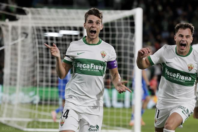 易边再战开场仅7分钟,皇马遭到重创,埃尔切前场左路打出精妙配合,A席尔瓦禁区角上晃开协防的贝林厄姆后横传中路,费巴斯禁区前沿接球和瓦莱拉来个撞墙配合,瓦莱拉禁区内接球巧妙的脚后跟直塞,费巴斯高速插上小禁区内一步超近距离半单刀冷静推射远角得手,埃尔切1:0打破僵局。落后的皇马之后做出换人调整,维尼修斯、巴尔韦德替补登场,但他们还是迟迟没有把握机会。直到第77分钟,皇马获得右侧角球机会,巴尔韦德操刀主罚兜传门前,贝林厄姆扛住防守抢点头球一顶,赫伊森在被防守他的阿彭鲁伯死死抱住的情况下,仍然凌空将球扫入网窝,皇马1:1扳平比分。