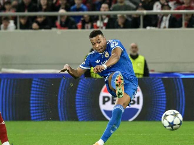 上半场开场仅仅8分钟,主场作战的奥林匹亚科斯取得领先,波登斯分球,奇奎尼奥和卡埃比打出了一个撞墙的配合,奇奎尼奥右脚抽射破门,1-0皇马,这个开局有些没有想到。第16分钟,阿诺德角球直接攻门被门将轻松没收。而从第22分钟开始到第29分钟,姆巴佩突然大爆发,短短7分钟上演了帽子戏法的好戏,先是维尼修斯助攻姆巴佩推射入网、接着居莱尔助攻姆巴佩头球破门、卡马文加挑传+姆巴佩单刀推射又进球,皇马几乎是瞬间3-1反超了奥林匹亚科斯。