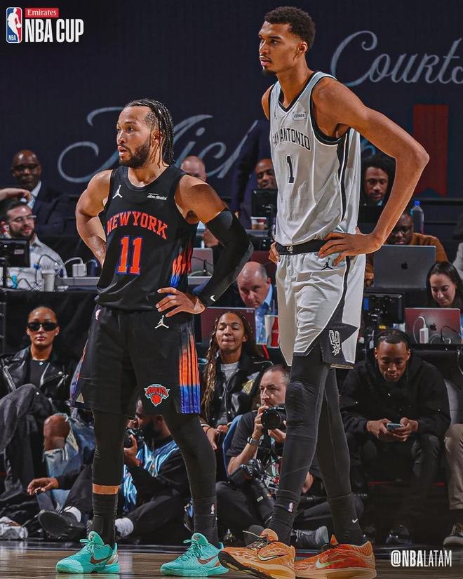 唐斯打了半节,膝盖不适再次下场。文班终于找回手感,单节7投5中砍下12分,马刺领先到两位数。尼克斯非常顽强,外线三分追到个位数。三节战罢,马刺94-89领先5分。马刺5人得分上双,文班16+6,哈珀和福克斯各得15分。第四节唐斯再次登场,今天真的拼了。克拉克森连续外线开炮,尼克斯打出一波21-11完成反超,末节最后4分钟尼克斯领先5分。马刺打得太乱了,文班一次单打唐斯不中,一次三分抢投偏出。卡斯尔底线球失误,福克斯运球被断。最后1分钟,尼克斯领先8分。马刺大势已去,全场结束,尼克斯124-113战胜马刺,夺得第三届NBA杯冠军。阿努诺比28分9板3助、布伦森25分4板8助2帽、唐斯16分11板、克拉克森15分。哈珀21分7板、文班亚马18分6板2帽。