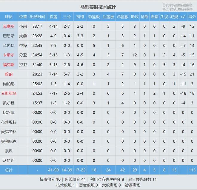 马刺末节崩盘,单节19-35输了16分,文班亚马末节4中0。最后看看数据,说说你的感受: