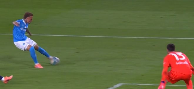 第31分钟,那不勒斯还是左路进攻,还是麦克托米奈,他突入禁区倒三角似传似射往门前兜,门将拉瓦利亚奋力将球扑出。第38分钟,那不勒斯右路压上,波利塔诺45度角处拿球横传,内雷斯接球转身摆脱防守,随后持续内切到禁区前沿左脚大力兜射,皮球直挂球门远端死角,那不勒斯1:0首开纪录。