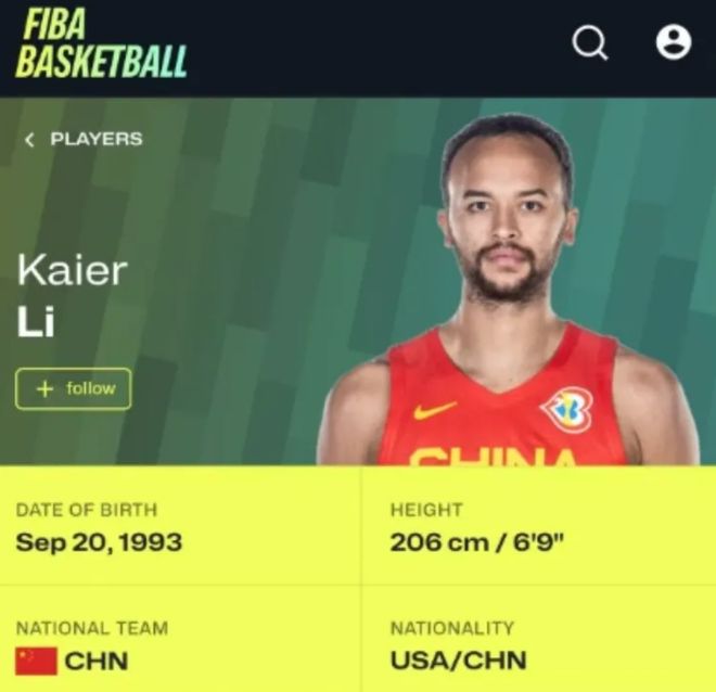 但实际上,这个事情并不对,因为NBA方面的球员国籍信息一直写的都是出生地,李凯尔出生在美国,一直写的都是“美国”。同样的,克拉克森和唐斯也都写的是“美国”,因为他们都出生在美国,但不影响他们可以代表菲律宾和多米尼加出战FIBA的比赛。李凯尔在2023年接受了中国男篮的归化,正式成为中国男篮的一员。对于中国男篮,李凯尔也算尽心尽力,更不用说他真的有八分之一的中国血统,因此归属感还是很强的。不过李凯尔是一个辅助型球员,并不适合中国男篮的打法。中国男篮需要一个得分手,需要能够消化大量球权的归化球员,李凯尔并不符合要求。但如果就这么说李凯尔彻底告别中国男篮,那肯定是不对的。事实上,在FIBA官网上,李凯尔的国籍信息依旧是“中国”,他如果受到中国男篮的征召,依旧可以选择代表中国男篮出战。本赛季,李凯尔已经32岁,在NBA也变成了普通轮换球员。