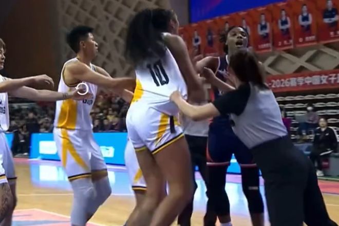 只是在第四节比赛过程中,双方的外援爆发冲突,广东女篮外援卡多佐被对手放倒后,她站起来立即冲回去推搡新疆女篮外援,导致场上一度陷入混乱,卡多佐也是被吹罚夺权犯规驱逐出场取消比赛资格。