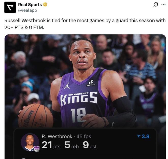 同时本场比赛结束后,威少已经连续三场比赛交出20+得分表现,成为NBA历史上唯一一位在生涯第18个赛季或以后能够连续三场交出20+得分表现的控球后卫。过去三场比赛,威少场均拿下23分8板5.7助1.7断,三分命中率高达42.4%。同时本场命中5记三分,也追平威少本季个人单场三分命中数纪录,本赛季威少已经先后3次单场命中5记三分,他的改变肉眼可见。