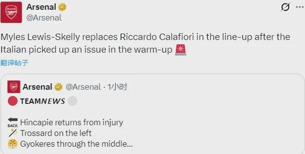 本场比赛的首发阵容本来是卡拉菲奥里踢左后卫,但阿森纳官方确认拉菲在赛前热身时遇到了问题,临时改为斯凯利首发。这个赛后阿尔特塔也有提及,用塔子的话,问题不是热身时产生的,是比赛前一天就有……但究竟是什么问题,阿尔特塔没说。