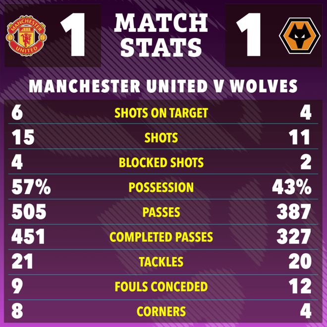 两队下半场都有取胜的机会。谢什科接应卡塞米罗的过顶传球后再次头球,但角度太正,若泽萨牢牢抱住。几分钟后,狼队后卫耶尔森·莫斯克拉向谢什科示范了怎样头球才有威胁,他险些自摆乌龙,门将门线救险,曼联错失乌龙球大礼。