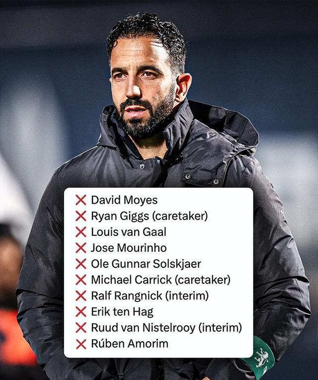 莫耶斯、吉格斯、范加尔、穆里尼奥、索尔斯克亚、卡里克、朗尼克、滕哈赫、范尼斯特鲁伊、阿莫林……