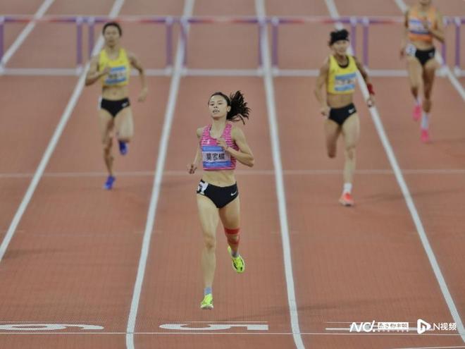 莫家蝶在十五运会女子400米栏决赛中以绝对优势夺冠。南都N视频记者 黎湛均摄