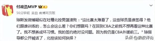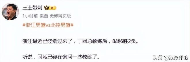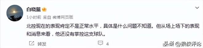 媒体人白晓篮发文点评:北控现在的表现肯定不是正常水平,具体是什么问题不知道。但从场上场下的表现和消息来看,他还没有掌控这支球队。