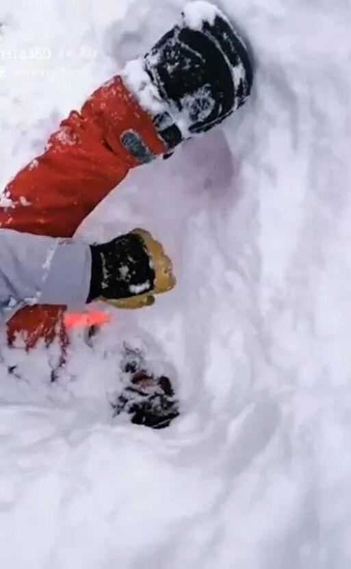 马特奥做的第一件事,就是迅速挖开受困男子头部的积雪,让他把脸露出来,防止粉雪堵住口鼻,导致窒息。