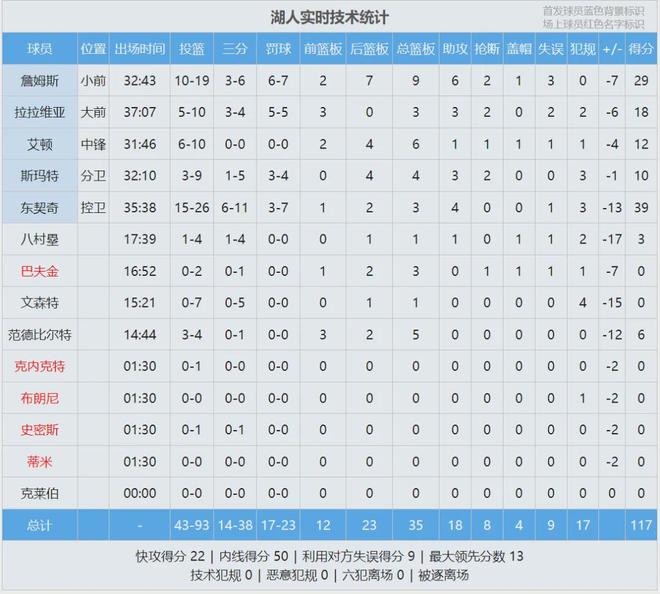 湖人本赛季至今,总净胜分还是负数!最后来看看比赛数据,说说你的感受: