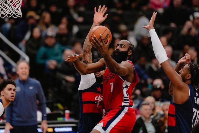 因为缺少伦纳德,所以哈登今天的打法尤为强硬。同样,缺少伦纳德之后,奇才队的防守重点自然就落到了哈登身上。只要哈登冲起来,奇才队的包夹会来的很迅速。甚至在弧顶接球的时候,也是多人包夹。这样的防守待遇,确实是火箭时期才有的。而因为对手的肆意包夹,才给了其余球员大量的空位,特别是内线的祖巴茨和大洛佩兹,今天这两位球员绝对尝到了当年卡佩拉的快乐了。所以,还是那个老话题:哈登是不是最被低估的球星呢?要知道,哈登目前的总助攻数比隆多要多、总三分数比雷·阿伦要多、总得分超过了邓肯等人,单场50+次数超过了41岁的詹姆斯,单场60+次数更是超过了乔丹。