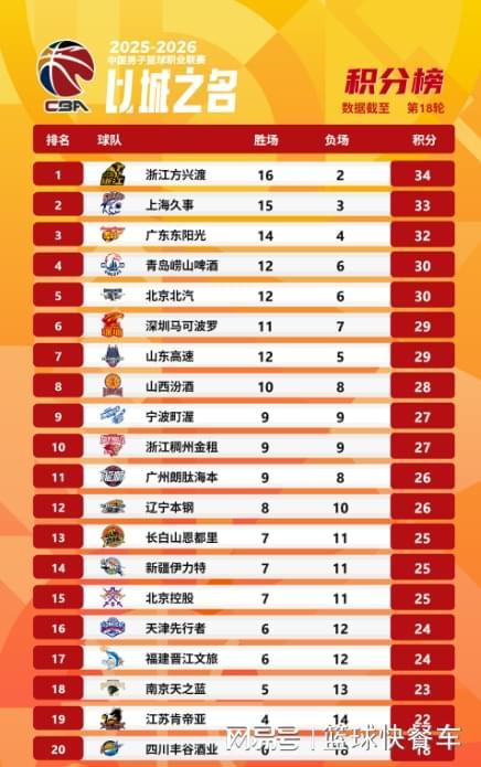 附:CBA积分榜最新排名